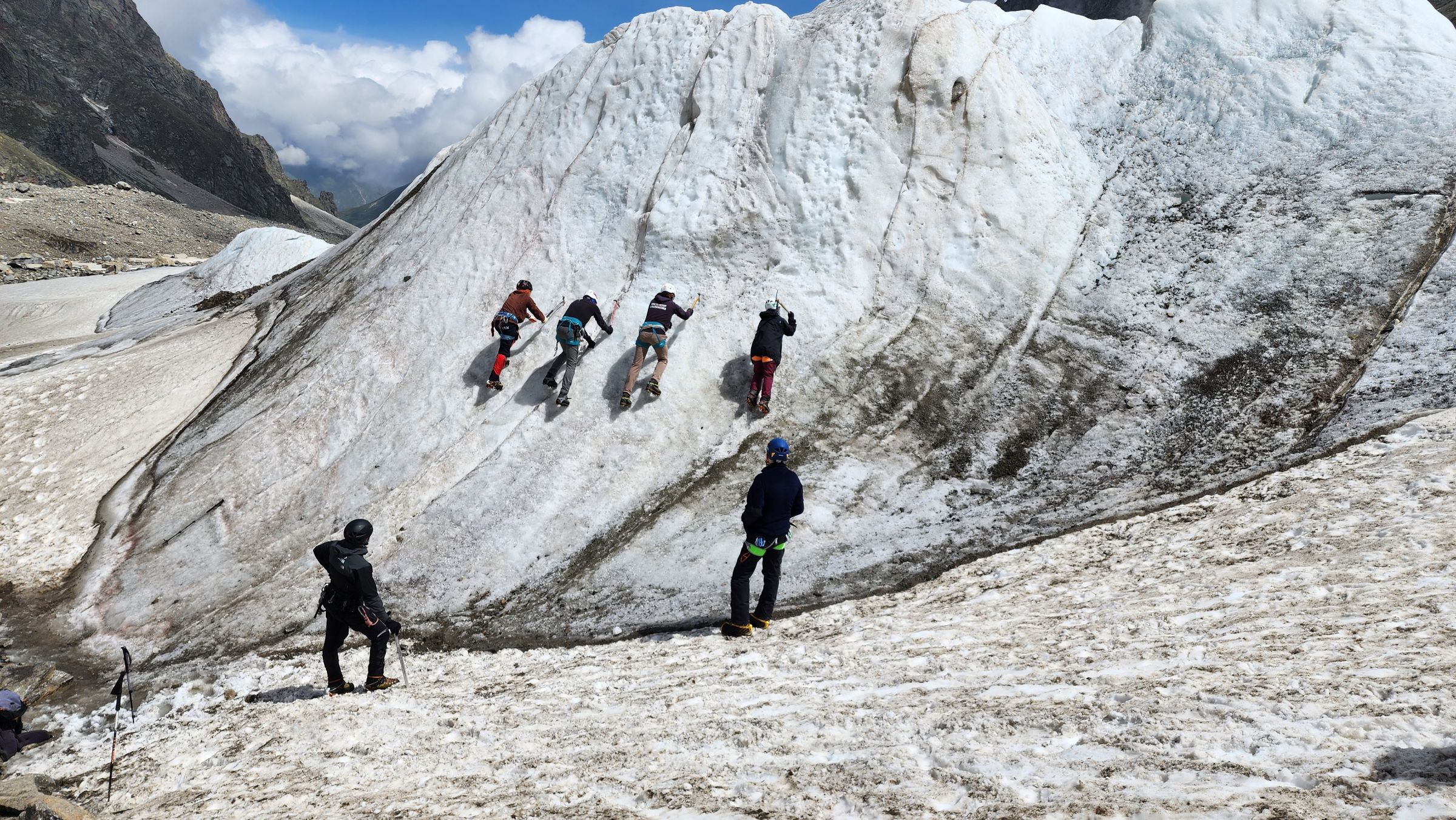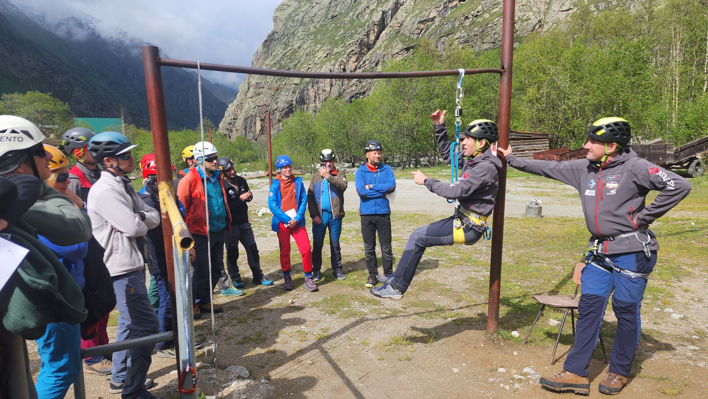На прошлой неделе группа инструкторов-проводников АльпИндустрия-Тур, проходила аттестацию в альпинистском лагере Адыл-Су в Приэльбрусье. Для успешной аттестации требовалось продемонстрировать успешное владение множеством техник.